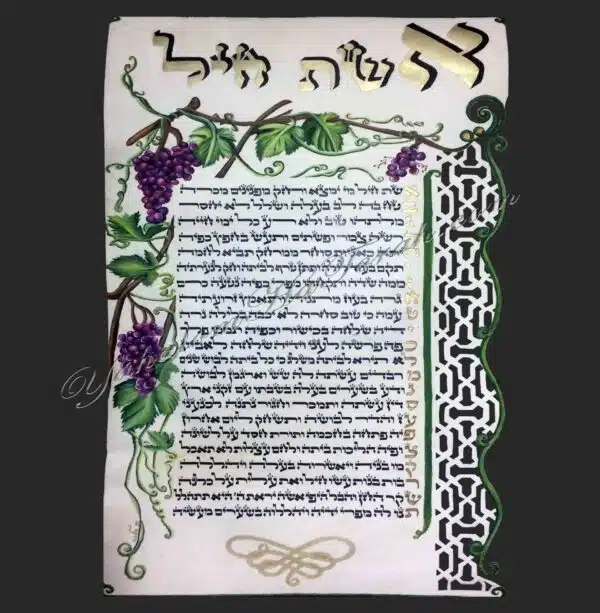 Yahalom haTorah met l’accent sur la qualité de ses travaux Art Judaica ainsi que sur la qualité des matériaux utilisés. Le parchemin de qualité exceptionnelle et est utilisé par les meilleurs Sofrim (scribes) de Jérusalem. Le texte est écrit par un Sofer Stam professionnel qui utilise une encre utilisée pour tous les travaux de Sofrout. La peinture est une gouache extra fine de très bonne qualité garantissant la vivacité des couleurs sur une durée de plus de 20 ans.